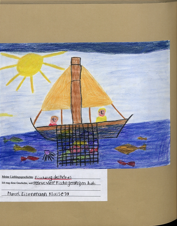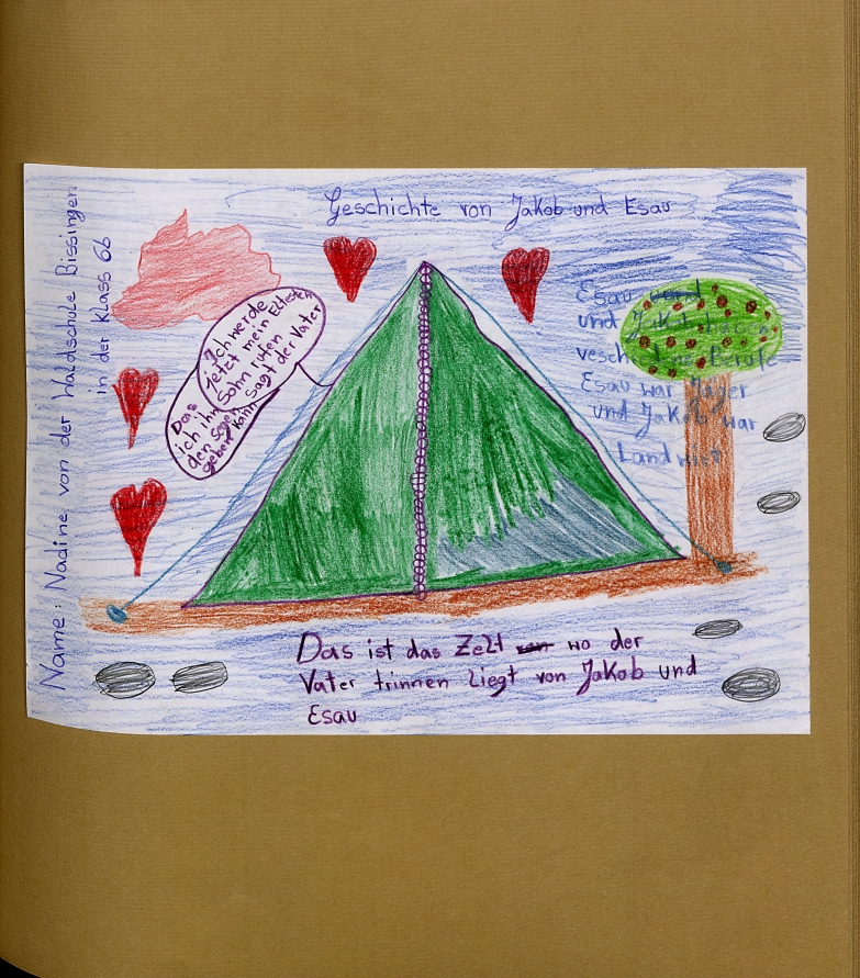 Die Museale Sammlung im Landeskirchlichen Archiv konnte kürzlich wieder ein besonderes Objekt aufnehmen: Eine Bilderbibel, im Religionsunterricht gestaltet von Kindern unterschiedlicher Schularten aus der Prälatur Ludwigsburg. Dieses bunte Gemeinschaftswerk war ein Abschiedsgeschenk an die Prälatin Dorothea Margenfeld.