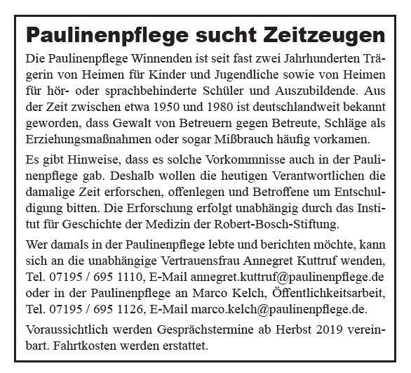 - Inserat der Paulinenpflege