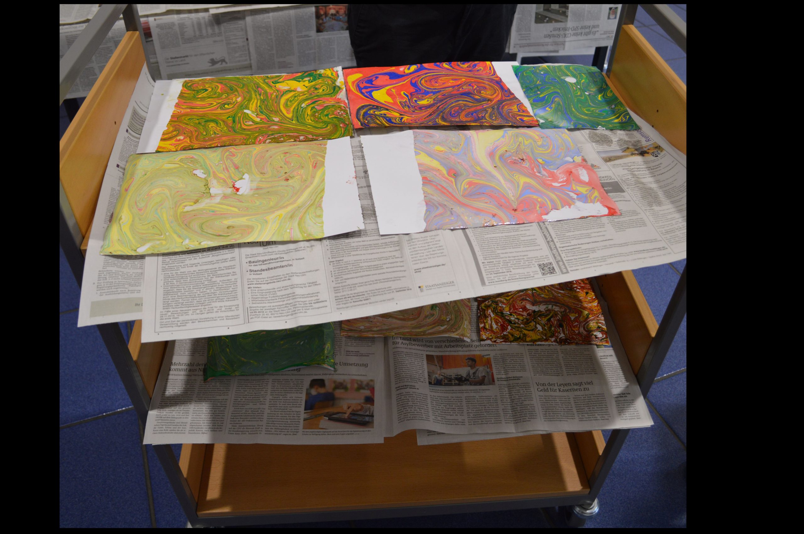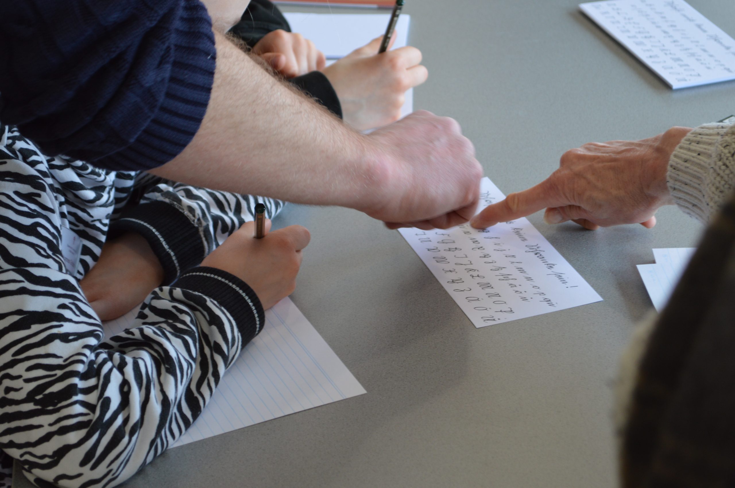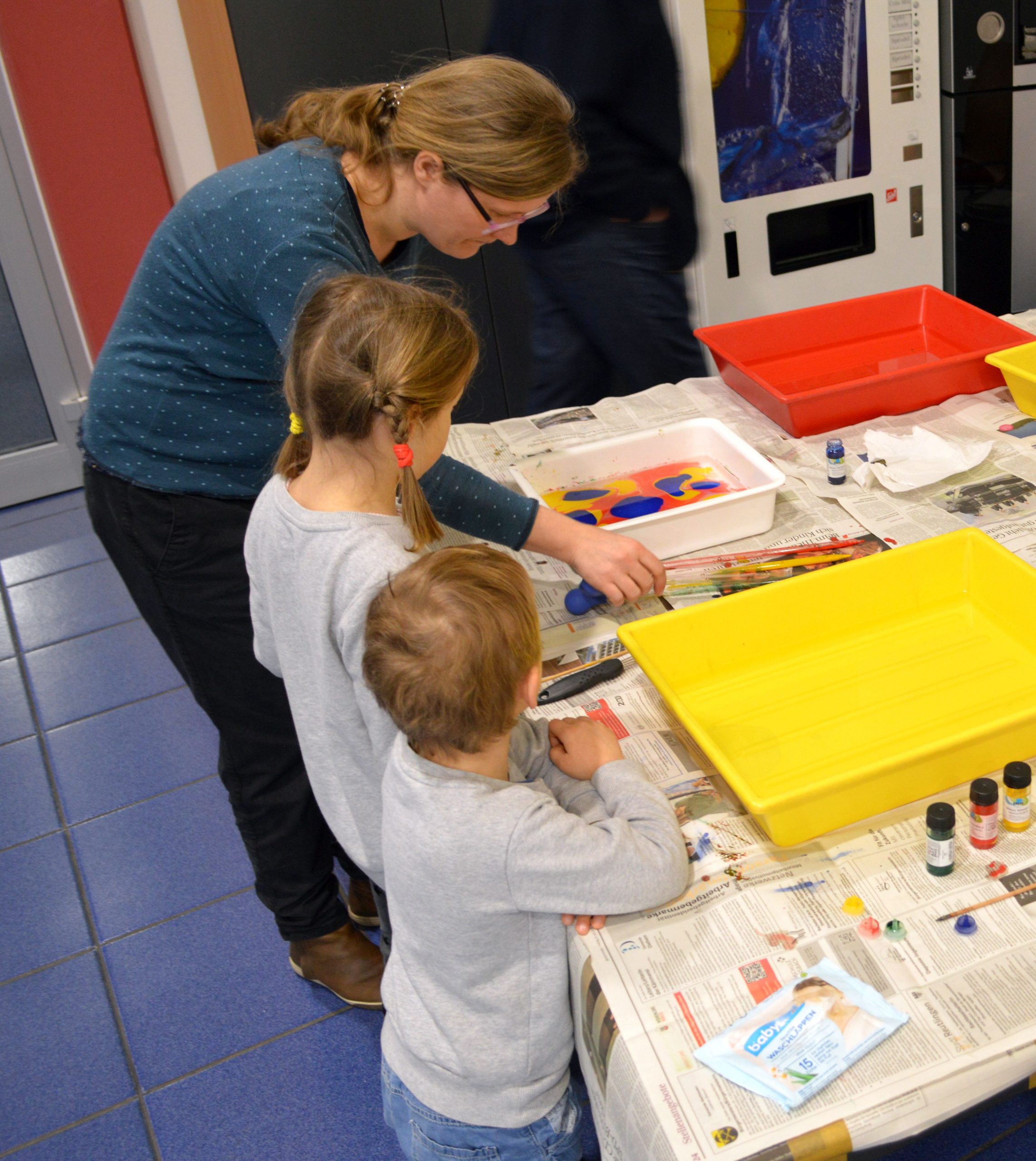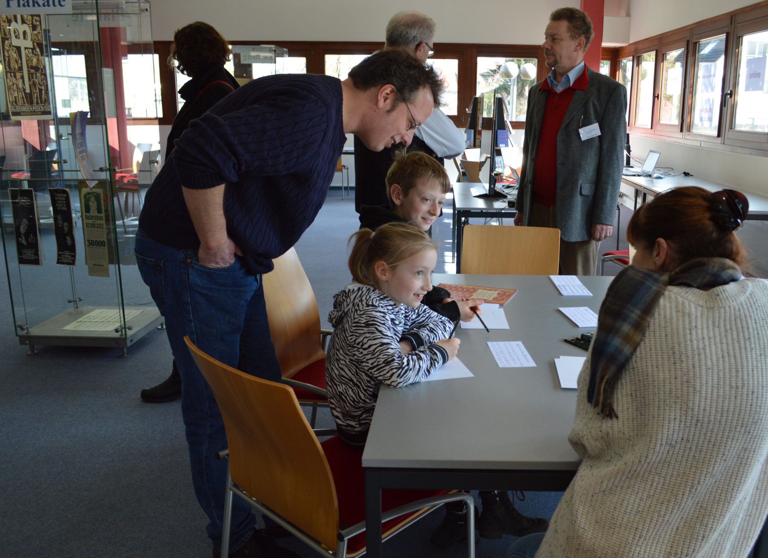 Auch die recht zahlreich erschienenen Kinder kamen auf ihre Kosten: Sie durften Papier marmorieren, in alter Schrift schreiben lernen oder den Stammbaum ihrer Familie zusammenstellen.