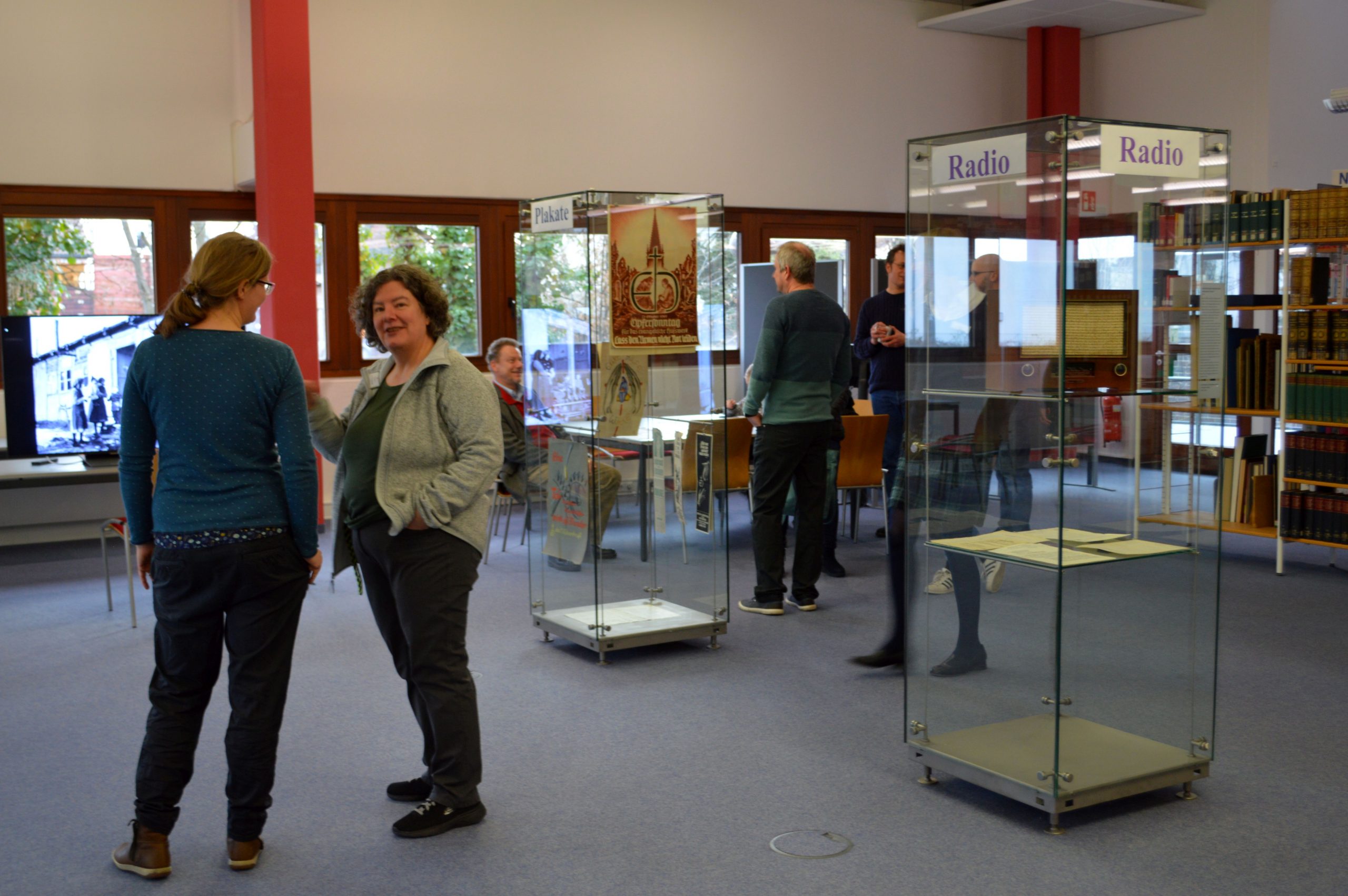 - Blick in den Lesesaal mit Austellungsvitrinen