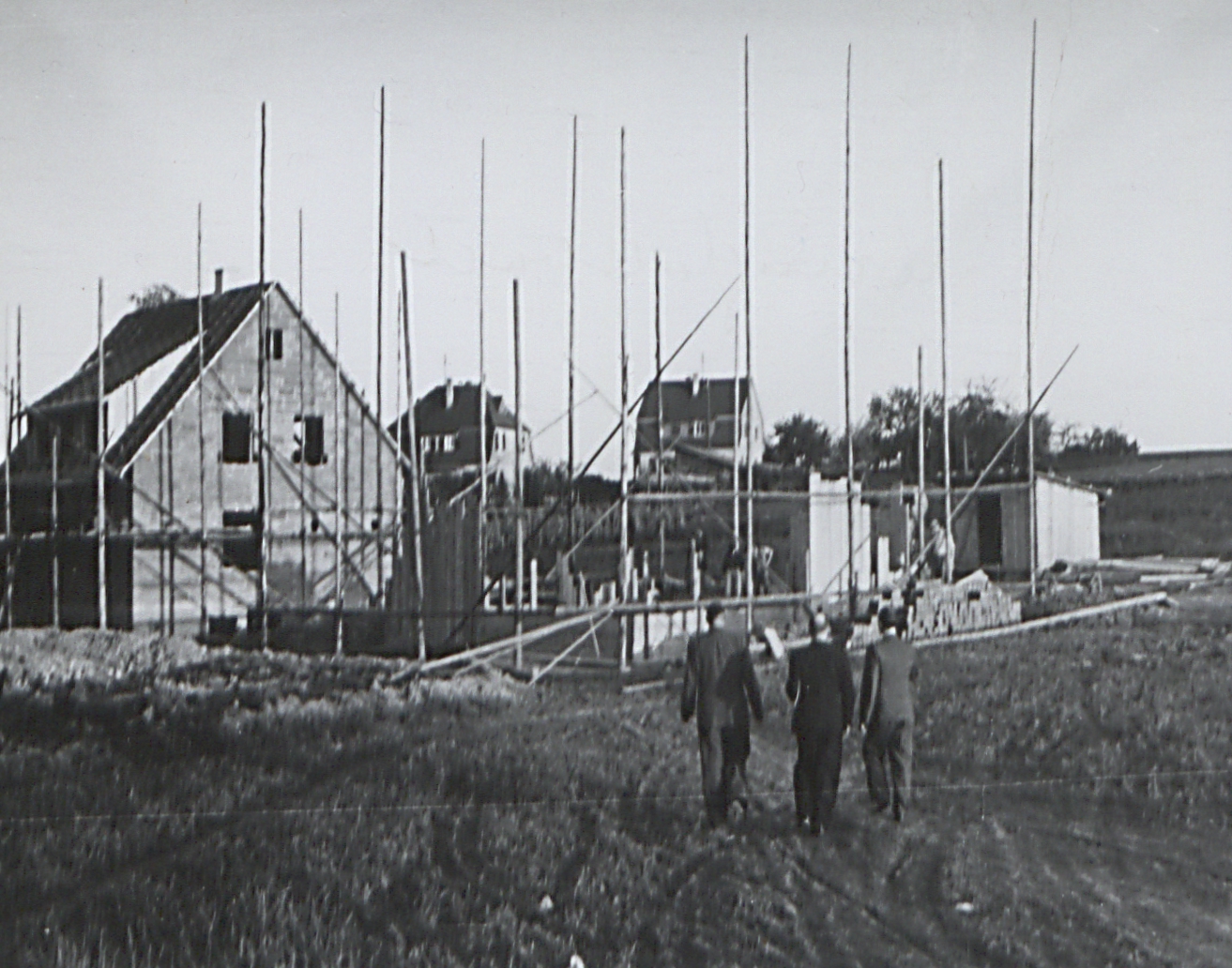 - Hilfswerksiedlung Kleinglattbach bei Vaihingen/ Enz. Häuser im Rohbau, 1957 Landeskirchliches Archiv Stuttgart, Bildersammlung, Nr. 9645