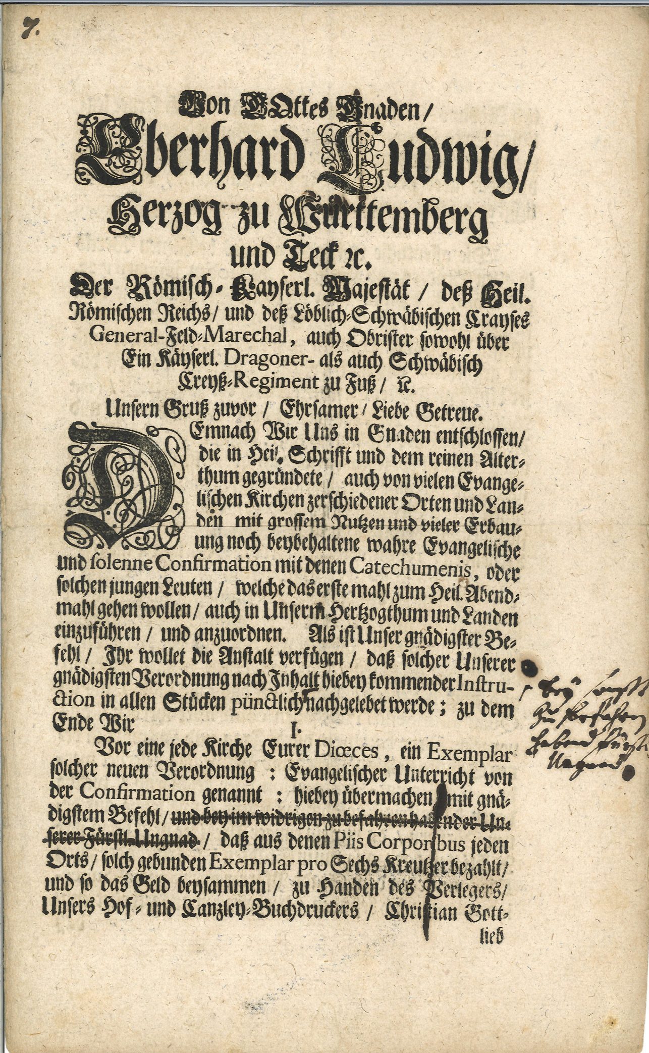 - Reskript zur Einführung der Konfirmation 1722