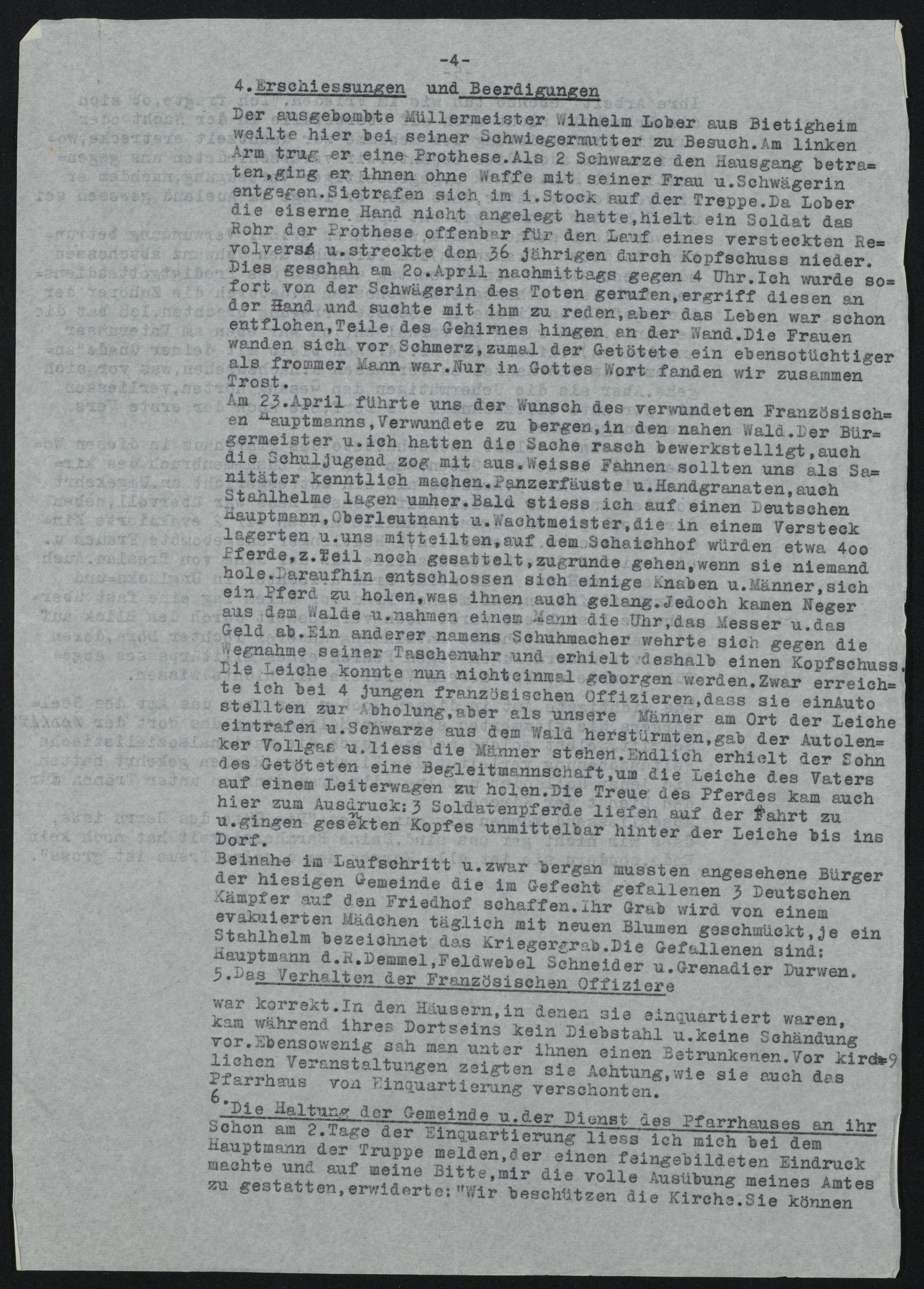 Schon direkt unter dem Eindruck der Ereignisse berichteten die Pfarrer an die Kirchenleitung, was in ihren Orten vorging. Später versuchte der Oberkirchenrat, eine flächendeckende Übersicht über das Kriegsende in Württemberg zu bekommen und ordnete an, Berichte über die NS-Zeit, das Kriegsende und die unmittelbare Nachkriegszeit zu verfassen. Daraus entstanden bis in die frühen 1950er-Jahre Hunderte von Berichten, die in einigen Fallen stattliche Chroniken wurden.