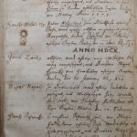 Kranz- und „Gehörnte Hand“-Symbol in einem Kirchenbuch?