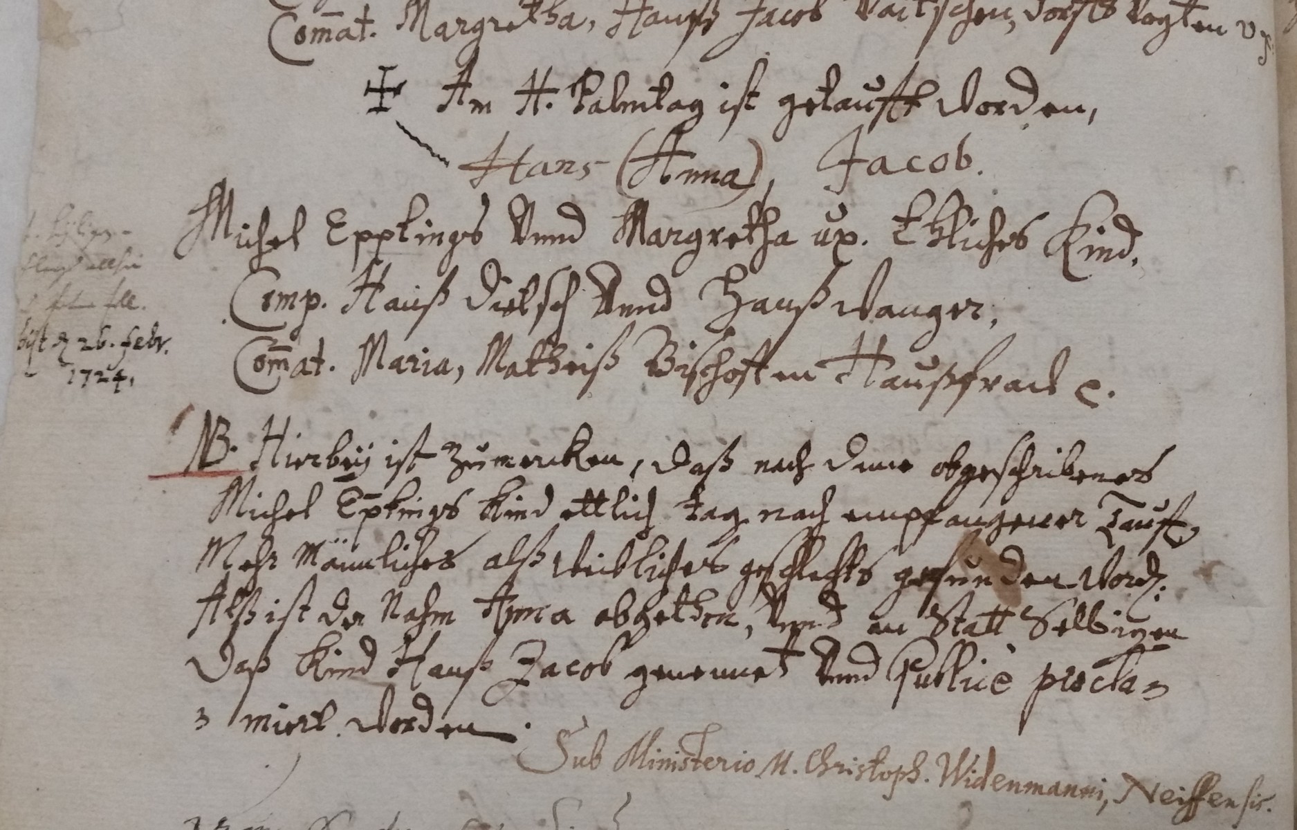 Im Taufregister von Peterzell bei Alpirsbach ist für den Palmsonntag 1653, den 3. April, folgender Eintrag zu finden: „Am H[eiligen] ...