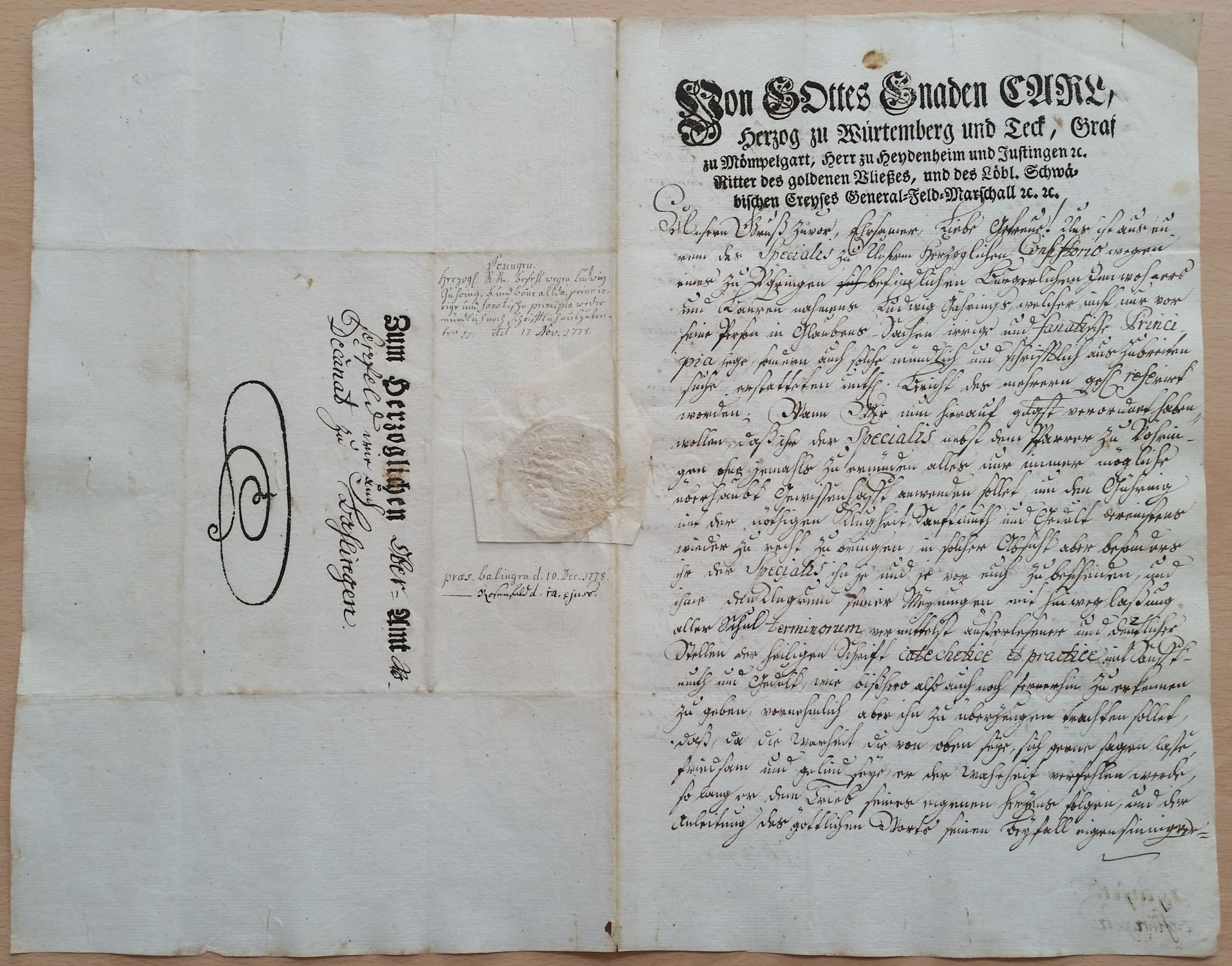 In einem Schreiben vom 17. November 1778 teilten die herzoglichen Regierungsräte im Namen des württembergischen Herzogs dem Oberamt Rosenfeld und ...