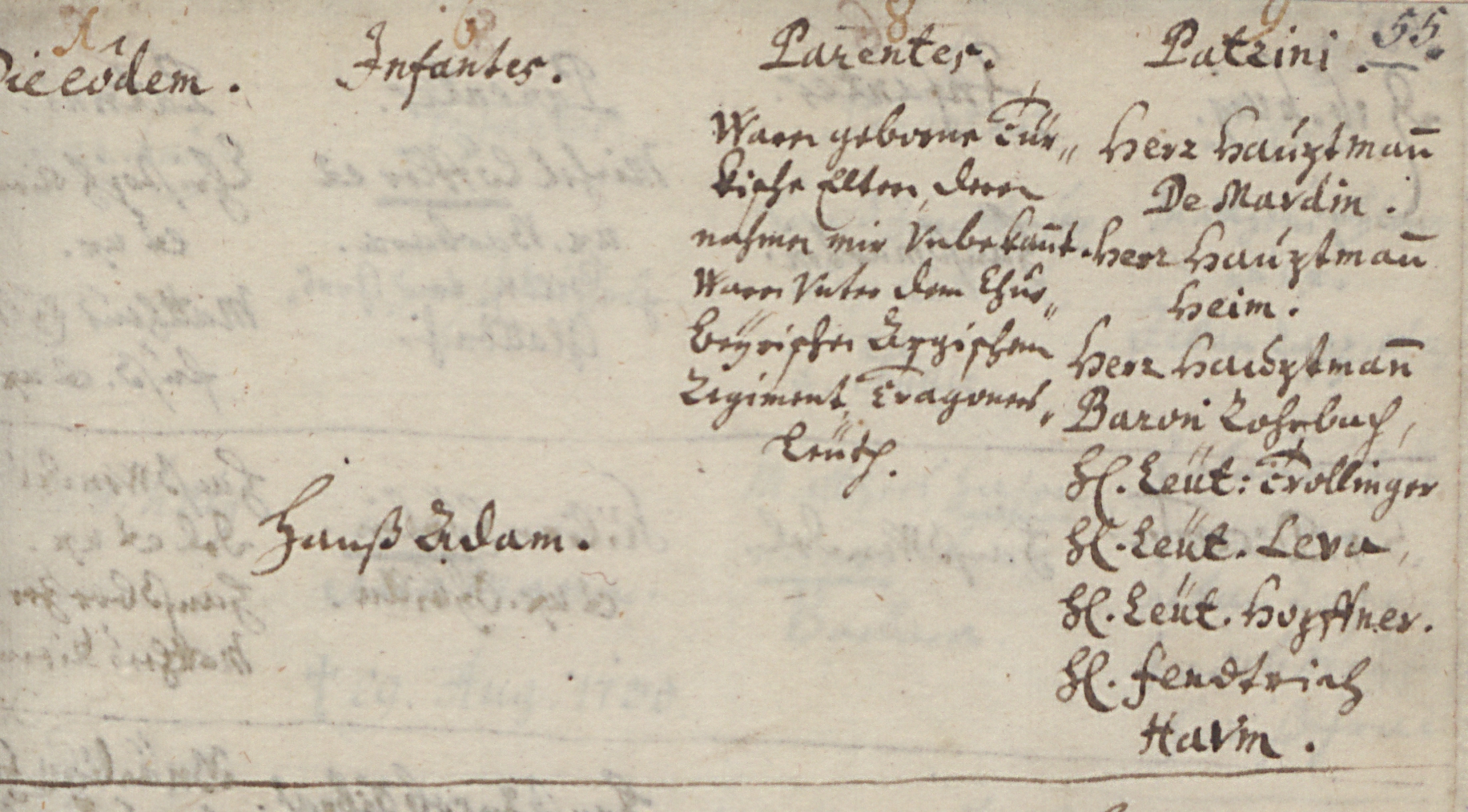 „Es hat sich aber zugetragen, d[aß] zwar mir Pfarrern vor dem Taufstein unbewußt war ein türkisches Kind, solle mit obgesetzten zweyen Zwillingen mitgetauft und zu einem Christen gemacht werden, dessen Eltern, Vater und Mutter, geborene Türken waren, die türkische Mutter sich aber deswegen heftig gewägert (gewehrt) und sich durchaus dazu nicht verstehen wollen, daß ihr Kind sollte getauft werden. Bis die Herren Officiere in Abwesenheit ihres Manns, der ohne des Fourage geritten, solches durch eine Soldatenfrau mit Gewalt aus ihrem Quartier nehmen lassen, die es dann in die Kirche vor den Taufstein gebracht und mit obermeldten Zwillingen getauft und den christlichen Namen aus Befehl der Herren Officierers Hans Adam Mühlhausser gegeben worden. Eltern: Waren geborene türkische Eltern, deren Namen mir unbekannt. Waren unter dem Churbayerischen Arzischen Regiment Dragonersleuth.“