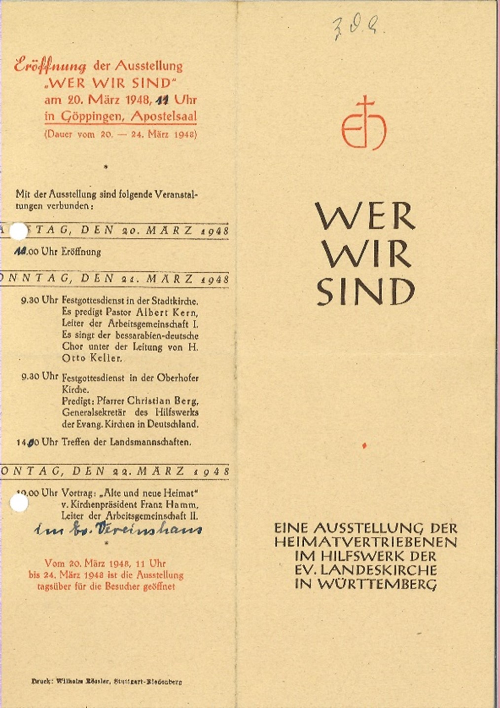 Um die einstigen Lebenswelten der Flüchtlinge näherzubringen und dabei Vorurteile abzubauen, finanzierte das Hilfswerk der Evangelischen Kirche in Württemberg 1948 eine Ausstellung mit dem Titel „Wer wir sind“. Die sogenannten Neubürger hatten die Möglichkeit, sich und ihre Heimat durch Schnitzereien, Fotos, Trachten und Handarbeiten darzustellen. „Wer diese Ausstellung gesehen hat, der musste ein anderes Bild von den Heimatvertriebenen bekommen“, resümierte der Monatsbrief des Hilfswerks nach Abschluss der Ausstellung. Ziel der Schau war die Einsicht, „dass diese Bauern und Handwerker für uns keine Fremdlinge sein können.“ Die in Hilfskomitees organisierten Donauschwaben, Siebenbürger Sachsen, Banater Schwaben, Bessarabier und Dobruschdadeutsche beteiligten sich an der Ausstellungskonzeption. In 18 württembergischen Städten wurde die Ausstellung gezeigt und in Feierstunden und Gottesdiensten eröffnet. Eine Brücke des gegenseitigen Verstehens und der christlichen Nächstenliebe sollte gebaut werden. Die Alteingesessenen konnten mit dem Besuch der Ausstellung deutlich machen, „daß man hierzulande nicht ohne Herz ist und immer mehr zu tun gewillt ist, das materielle und das seelische Leiden der Brüder und Schwestern zu lindern und ihnen eine wirkliche Heimat in unserem armen und gequälten Land zu bereiten.“