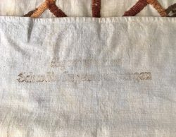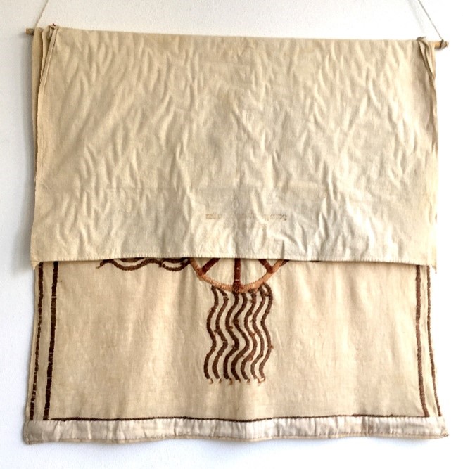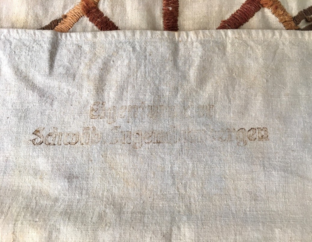 Das Altartuch mit seinem auf der Rückseite sichtbaren Stempel „Eigentum der Schwäbischen Jugendherbergen“ ist zusammen mit den Informationen zu seiner Entstehung ein besonderes Objekt. Solche sichtbaren und unsichtbaren Hintergründe werden in der Regel bei der Aufnahme in die Museale Sammlung und beim Verzeichnen in der Datenbank vermerkt. Über ihre Dinglichkeit hinaus werden Objekte so wertvolle Zeugnisse der Geschichte, die späteren Generationen Einblick in frühere Lebenswelten geben können.