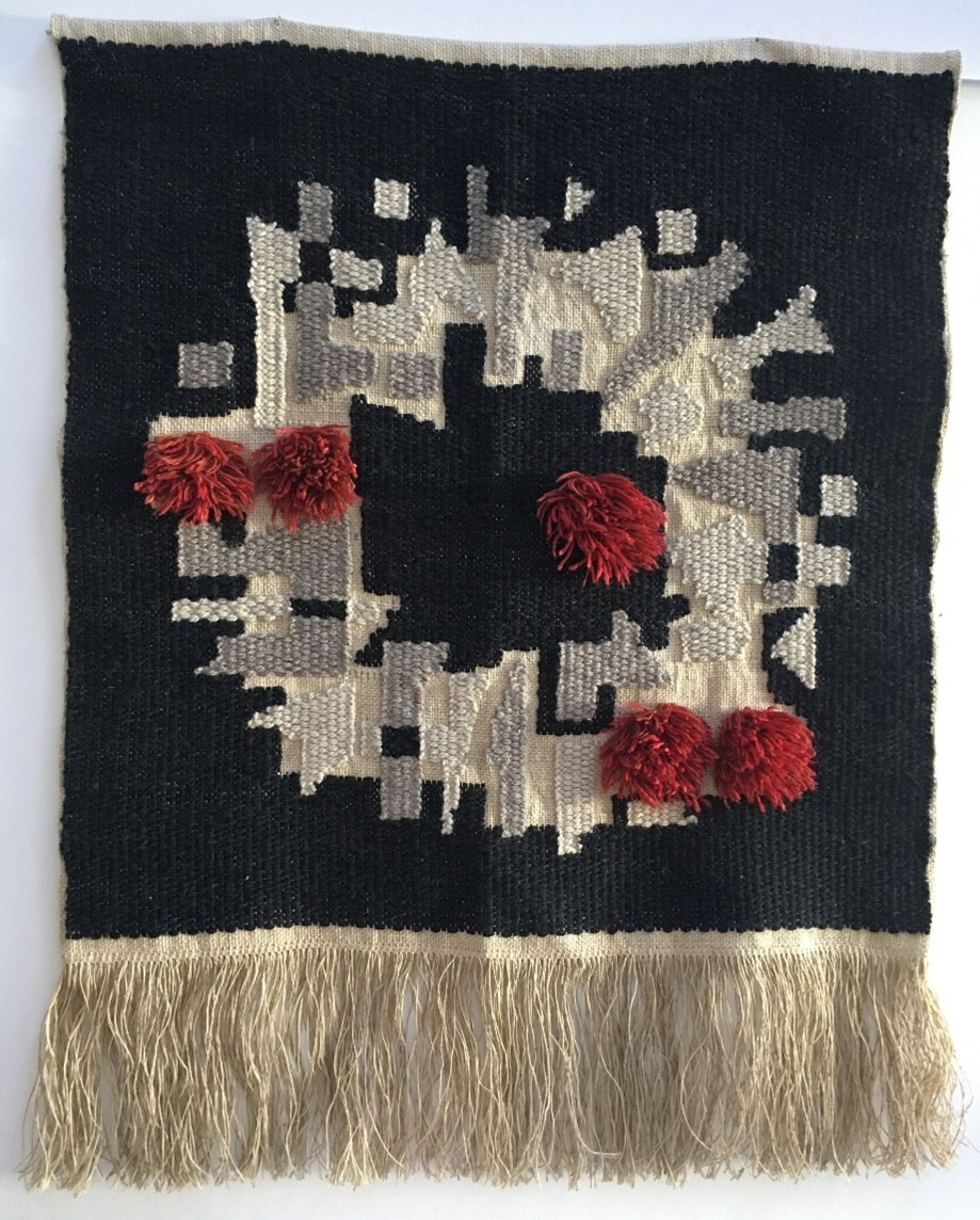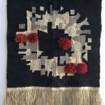- Wandteppich 1955, Stickerei auf handgewobenem Leinen, Dornenkrone mit Blutstropfen, Entwurf Robert Eberwein.