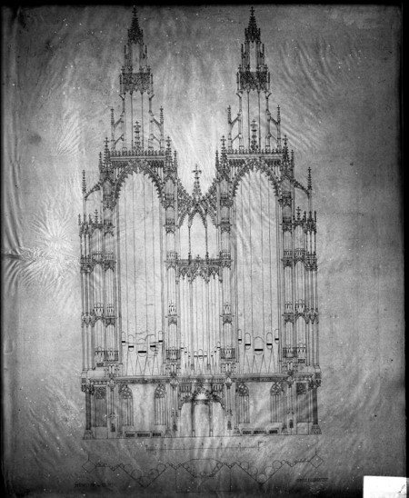 - Aufriss vom Thrän`schen Orgelgehäuse. Ulm Münsterbauhütte, Bildarchiv.