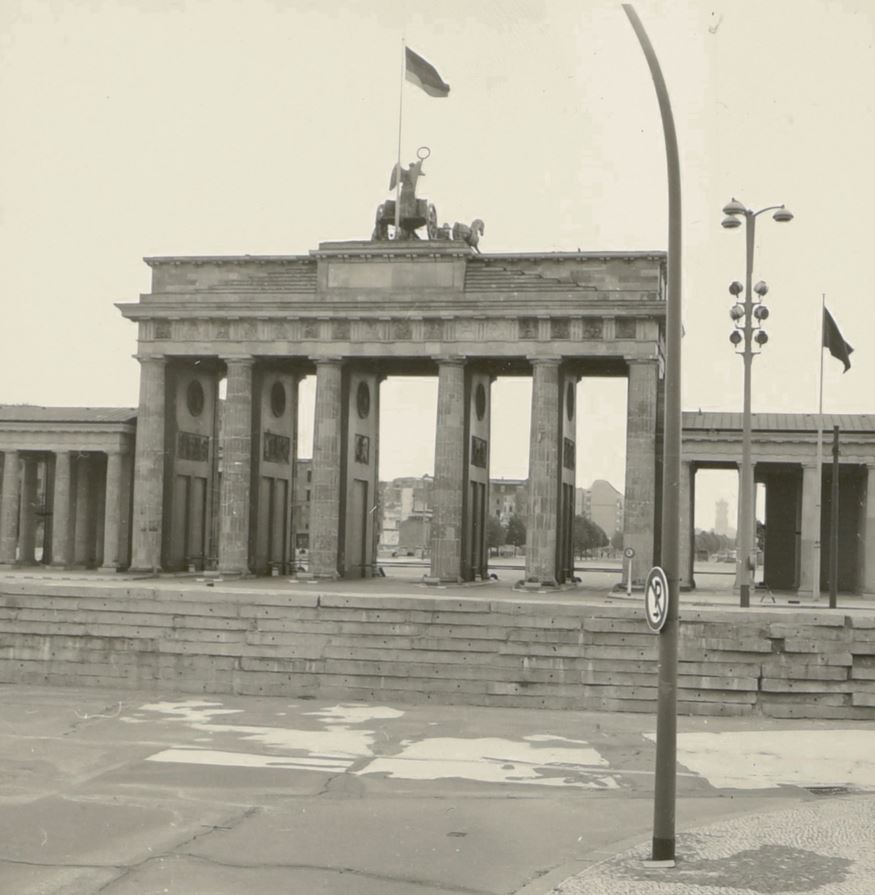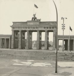 Bau der Berliner Mauer 1961, Hintergrund Brandenburger Tor. Landeskirchliches Archiv Stuttgart, Bildersammlung, Nr. 8958.