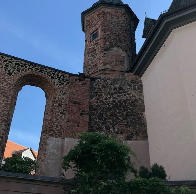 Eine weitere Führung fand in der wallonisch-niederländischen Kirche Hanau statt, die 1597 von Graf Philipp Ludwig II. von Hanau-Münzenberg für niederländisch und französisch sprechende Glaubensflüchtlinge als reformierte Kirche gegründet und als Doppelkirche erbaut worden war. Nach dem Zweiten Weltkrieg wurde lediglich die kleinere niederländische Hälfte wiederaufgebaut, während der größere wallonische Teil Ruine geblieben ist und heute in das Gemeindezentrum integriert ist. Das Rauminnere der mehrseitigen Kirche besticht durch zentrierte Verbundenheit zwischen den Gläubigen und der Kanzel an der Schnittstelle der beiden einstigen Kirchen.