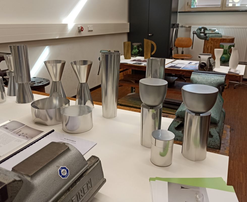 Für die Teilnehmer und Teilnehmerinnen der AG war der Besuch äußerst spannend und aufschlussreich. Die Führung durch die Werkstätten der Gold- und Silberschmiede visualisierte die große Anzahl an Werkzeugen und die gewaltige Vielfalt an Formvorlagen für die Bearbeitung der Metalle, ermöglichte den Austausch mit den Lernenden bei ihren Entwürfen und zeigte ihre großartigen Ergebnisse und die Preise, die sie bei stattgefundenen Wettbewerben erworben haben. Nicht zuletzt verblüffte der Blick in die Bibliothek mit einem enorm großen Bestand an Werken zur Gold- und Silberschmiedekunst, zur Metallverarbeitung, zur Kunstgeschichte und zum Design.