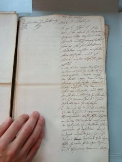 Alexander Staib musste sich für seine Arbeit paläographische Kenntnisse aneignen, um die Archivalien des 17. und 18. Jahrhunderts lesen zu können. Das Landeskirchliche Archiv unterstützte ihn dabei durch das Bereitstellen von Hilfsmitteln in Form von Schrifttafeln. Ebenfalls sehr hilfreich sind laut Alexander Staib die Digitalisate der Protokolle, die ihm durch das Archiv zur Verfügung gestellt worden sind.