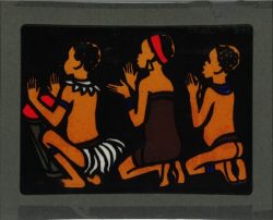 - 96.002-08. Kinder aus Europa und Afrika sind in die Krippenszenen aufgenommen. Die Darstellungen zeigen die jeweiligen Stereotypen der damaligen Zeit.