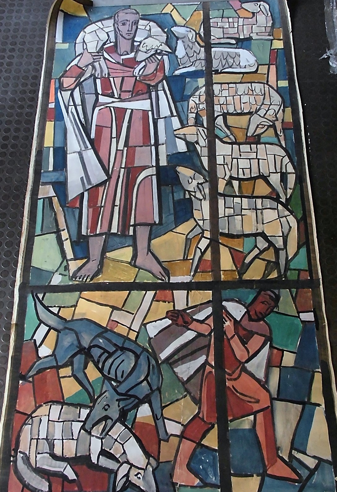 - Der gute Hirte, Farbvorlage für Kirchenfenster, bezeichnet „Wyhlen, Baden“, Inv. Nr. 15.032