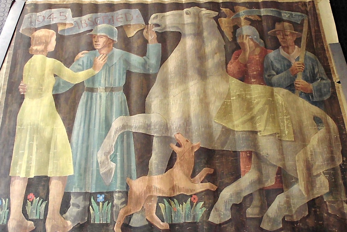 - „1945 Abschied“, Farbvorlage für Wandgemälde (?), ohne Bezeichnung, Inv. Nr. 15.030