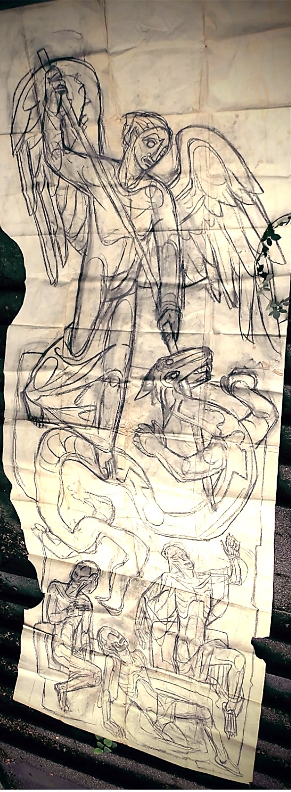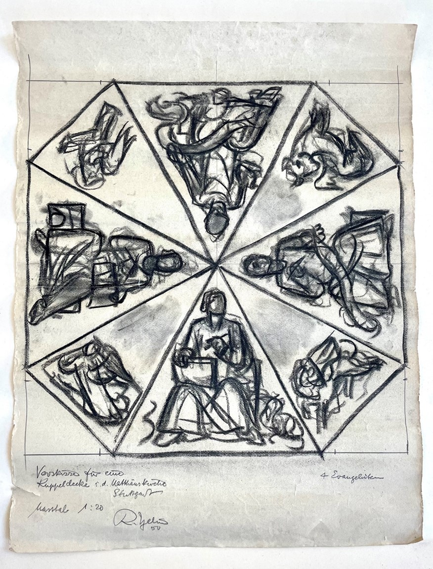 - Vier Evangelisten, Vorskizze für Kuppeldecke in der Matthäuskirche Stuttgart, Maßstab 1:20, 1950 Inv. Nr.: 15.XXX