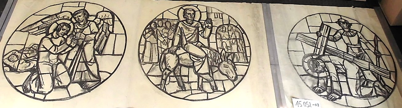 - Passion, Werkzeichnung für Kirchenfenster, Reuschkirche Göppingen, 1950, Inv. Nr. 15.052; 01-03