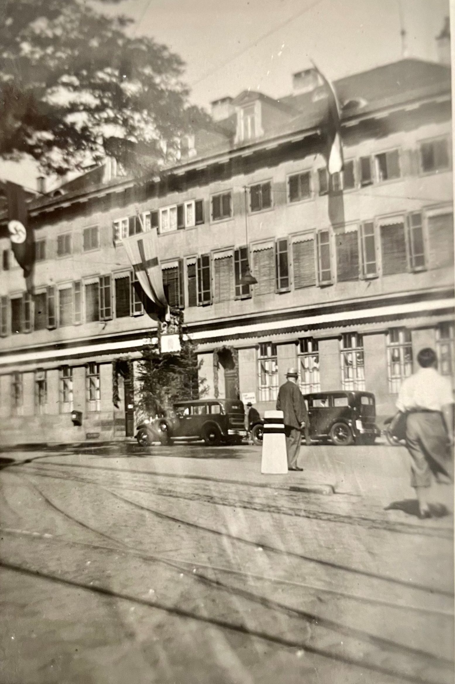 - Ein stattlich Haus ist Postplatz 4 / wir traten ein durch seine Tür (Originalbeschriftung), Außenansicht 1938. LKAS, AS 1, U 74