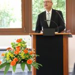 Am Nachmittag des 6. Mai fand in den Räumlichkeiten des Landeskirchlichen Archivs die Verabschiedung unseres langjährigen Archivleiters statt. Zahlreiche Gäste aus dem Oberkirchenrat, von anderen Archiven, aus dem beruflichen und persönlichen Umfeld von Norbert Haag waren gekommen. Wie es für eine kirchliche Einrichtung angemessen ist, wurde auch gesungen und es gab eine Andacht durch Oberkirchenrat Georg Eberhardt. Für eine stimmungsvolle musikalische Begleitung der Feier sorgte Kantor Leonhard Völlm. Grußworte sprachen der Direktor des Oberkirchenrats Stefan Werner, der Präsident des Baden-Württembergischen Landesarchivs Prof. Dr. Gerald Maier, die Leiterin des Landeskirchlichen Archivs Karlsruhe Mareike Ritter, die Leiterin des Diözesanarchivs Rottenburg-Stuttgart Frau Angela Erbacher, sowie Prof. Dr. Siegfried Hermle für den Verein der Württembergischen Kirchengeschichte.