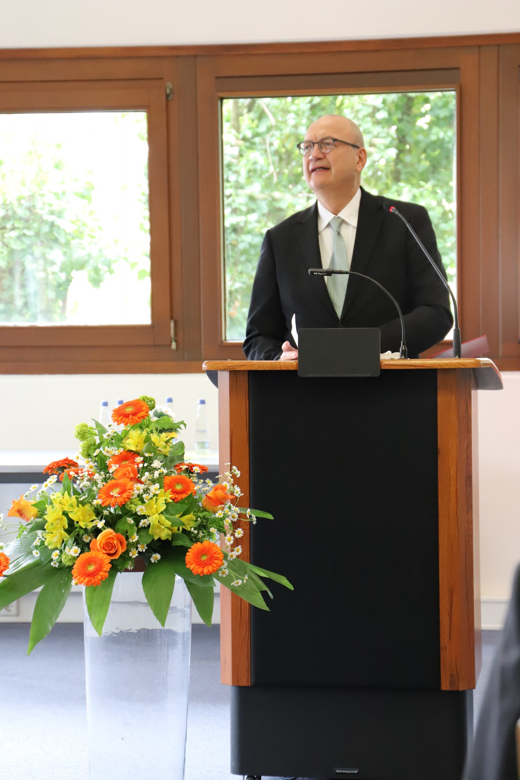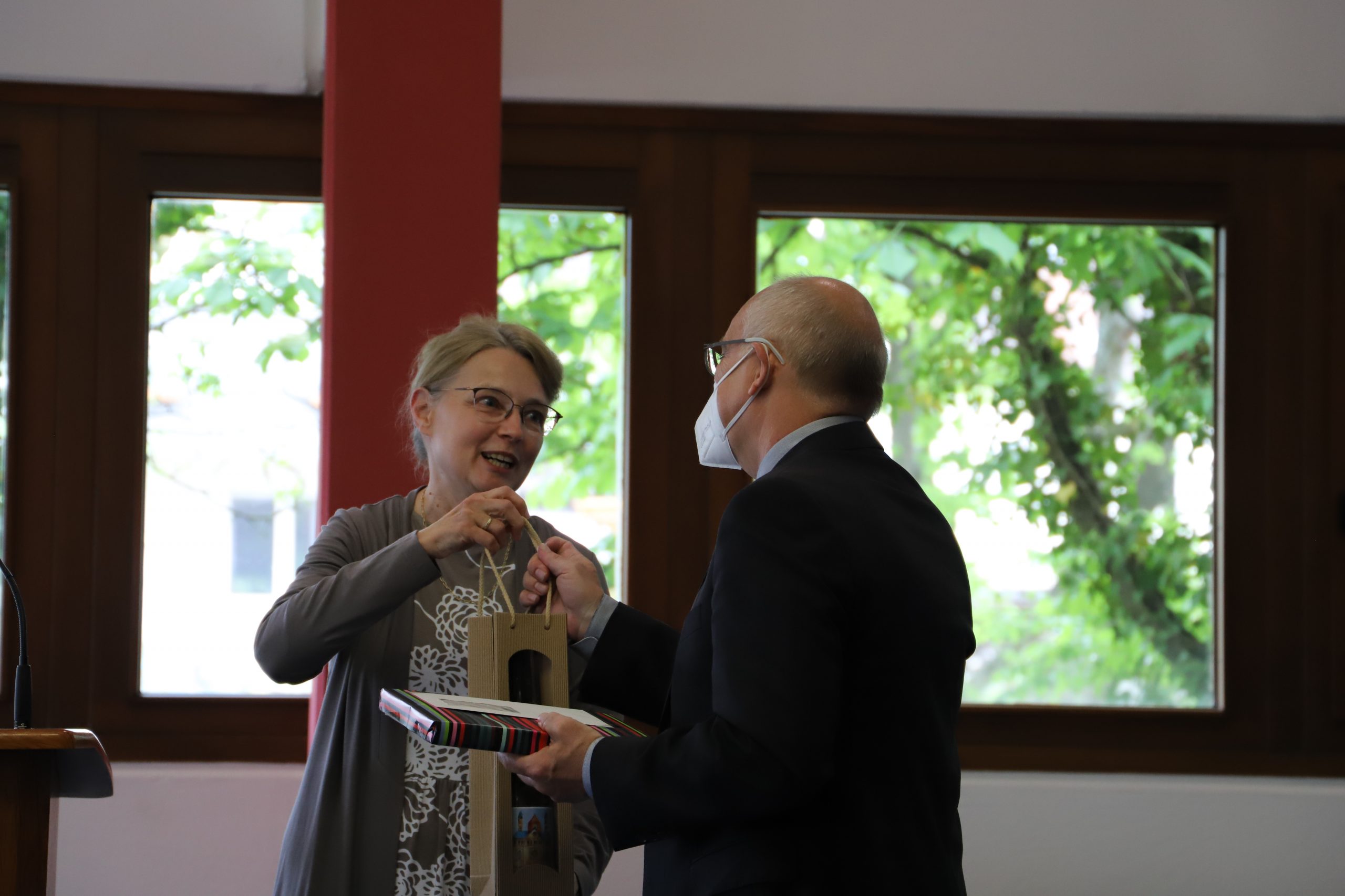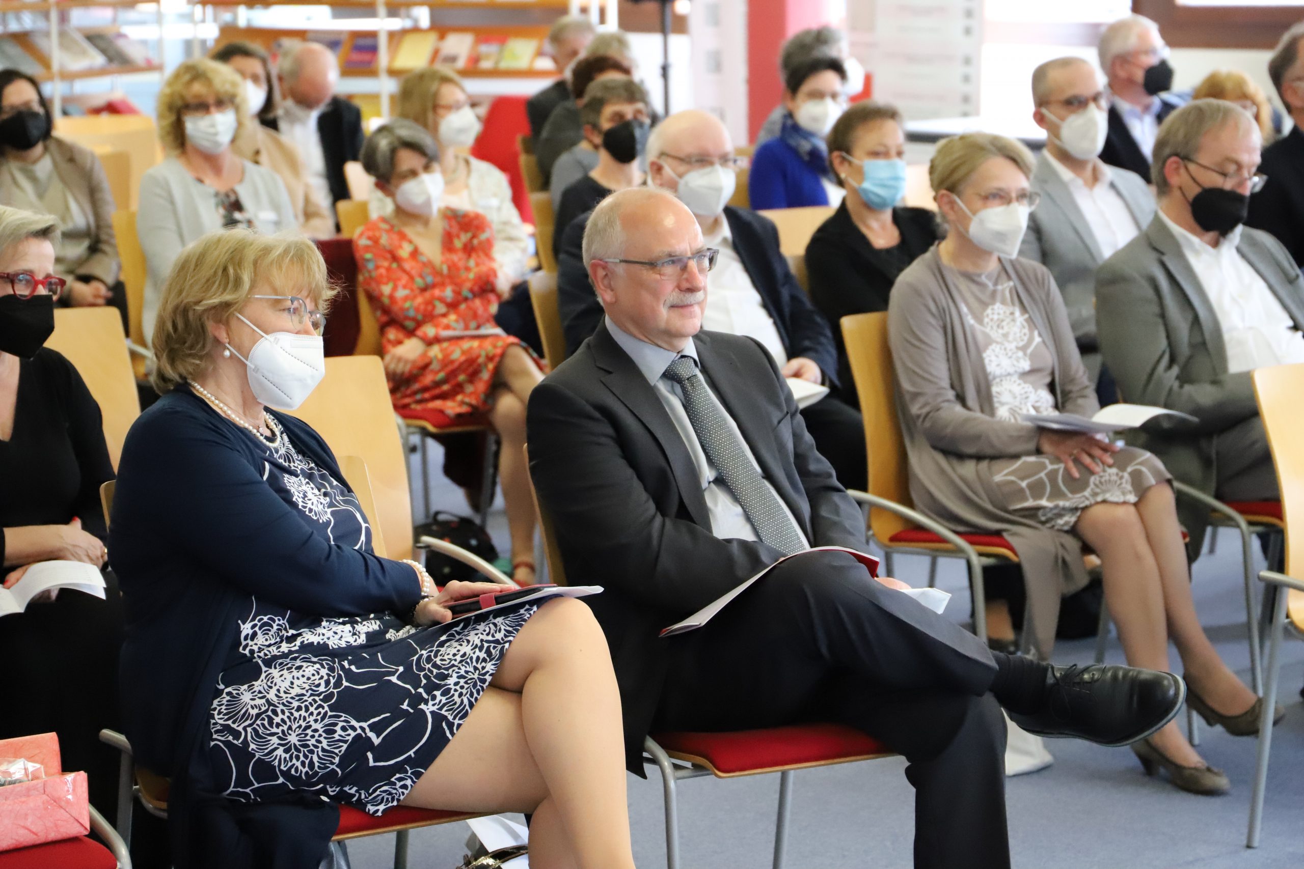 Am Nachmittag des 6. Mai fand in den Räumlichkeiten des Landeskirchlichen Archivs die Verabschiedung unseres langjährigen Archivleiters statt. Zahlreiche Gäste aus dem Oberkirchenrat, von anderen Archiven, aus dem beruflichen und persönlichen Umfeld von Norbert Haag waren gekommen. Wie es für eine kirchliche Einrichtung angemessen ist, wurde auch gesungen und es gab eine Andacht durch Oberkirchenrat Georg Eberhardt. Für eine stimmungsvolle musikalische Begleitung der Feier sorgte Kantor Leonhard Völlm. Grußworte sprachen der Direktor des Oberkirchenrats Stefan Werner, der Präsident des Baden-Württembergischen Landesarchivs Prof. Dr. Gerald Maier, die Leiterin des Landeskirchlichen Archivs Karlsruhe Mareike Ritter, die Leiterin des Diözesanarchivs Rottenburg-Stuttgart Frau Angela Erbacher, sowie Prof. Dr. Siegfried Hermle für den Verein der Württembergischen Kirchengeschichte.