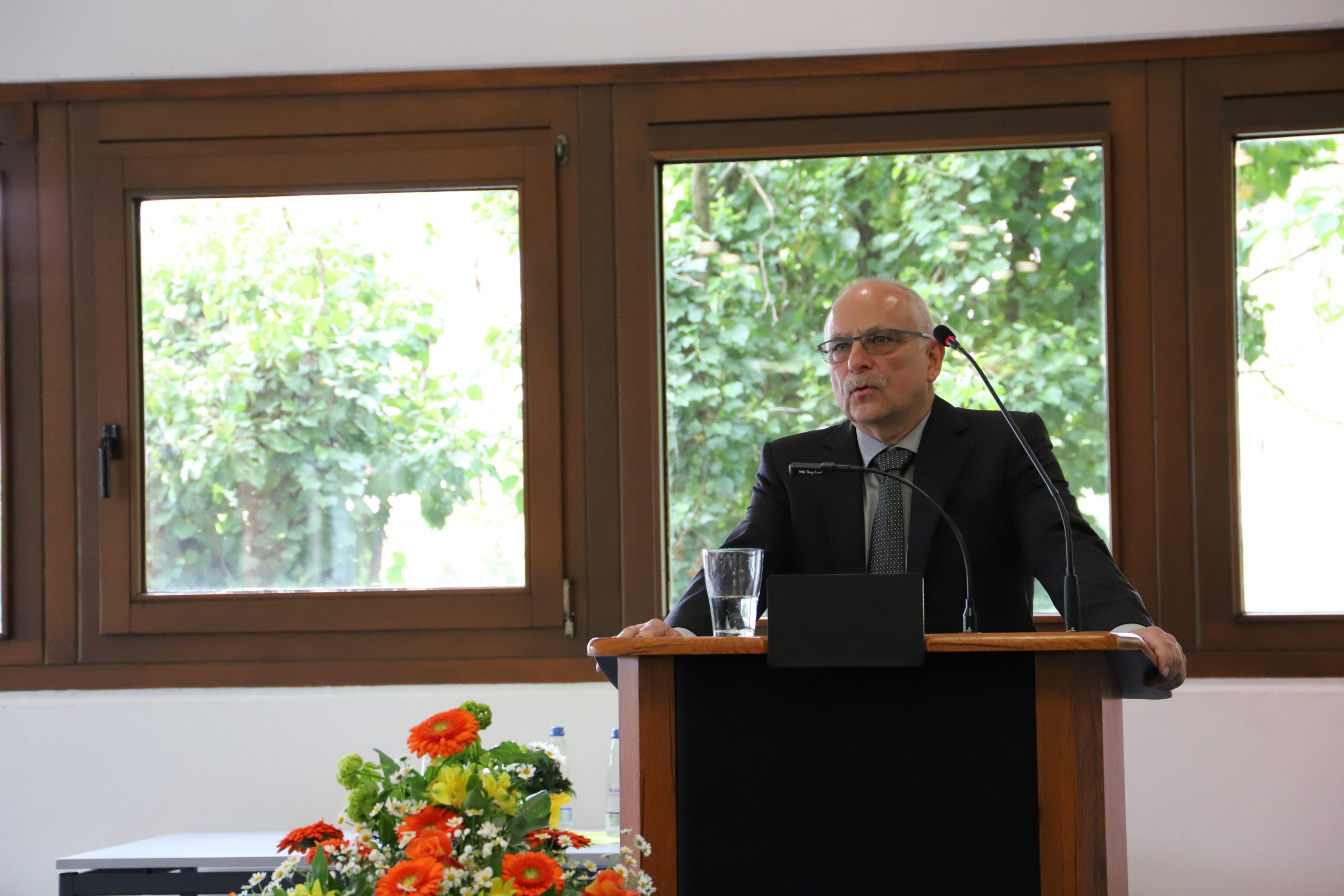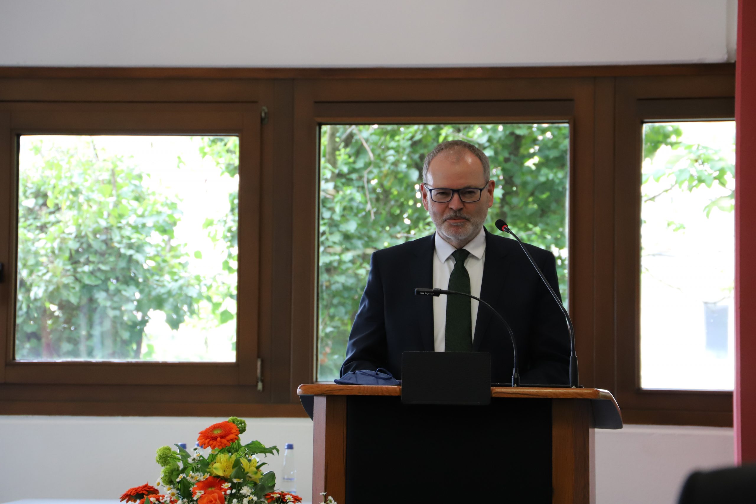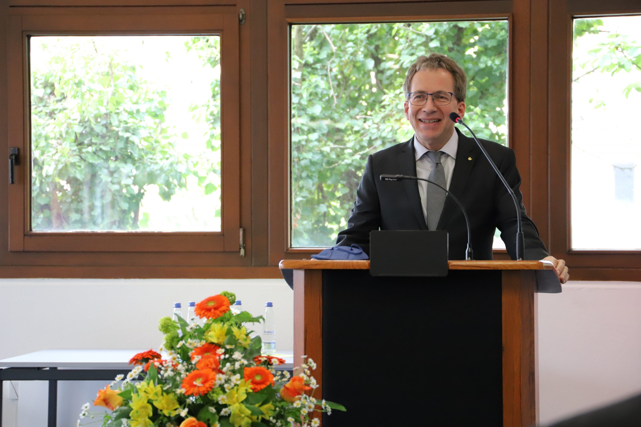 Am Nachmittag des 6. Mai fand in den Räumlichkeiten des Landeskirchlichen Archivs die Verabschiedung unseres langjährigen Archivleiters statt. Zahlreiche Gäste aus dem Oberkirchenrat, von anderen Archiven, aus dem beruflichen und persönlichen Umfeld von Norbert Haag waren gekommen. Wie es für eine kirchliche Einrichtung angemessen ist, wurde auch gesungen und es gab eine Andacht durch Oberkirchenrat Georg Eberhardt. Für eine stimmungsvolle musikalische Begleitung der Feier sorgte Kantor Leonhard Völlm. Grußworte sprachen der Direktor des Oberkirchenrats Stefan Werner, der Präsident des Baden-Württembergischen Landesarchivs Prof. Dr. Gerald Maier, die Leiterin des Landeskirchlichen Archivs Karlsruhe Mareike Ritter, die Leiterin des Diözesanarchivs Rottenburg-Stuttgart Frau Angela Erbacher, sowie Prof. Dr. Siegfried Hermle für den Verein der Württembergischen Kirchengeschichte.