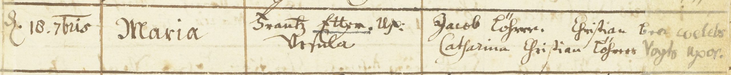 In den Taufeinträgen zu den am 8. Juni 1679 und am 18. September 1681 getauften Kinder von Frantz (N)Etter lautet der Name der Mutter Ursula. Die Paten waren Jacob Löhrer, Christian, Bartle Beeren Sohn bzw. coelebs (Junggeselle), und Catharina, Christian Löhrers (Vogt) Ehefrau.[6]