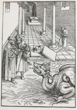 - Die Ausmessung des Tempels / Die zwei Zeugen und das Tier aus dem Abgrund, aus: Schramm, Albert: Luther und die Bibel. Die Illustration der Lutherbibel. Leipzig 1923, S. 22, Tafel 13.