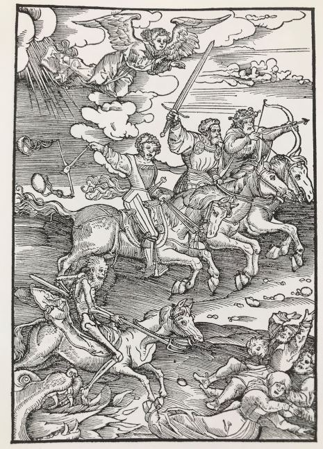 - Die apokalyptischen Reiter, aus: Volz, Hans: Martin Luthers deutsche Bibel. Entstehung und Geschichte der Lutherbibel. Hrsg. v. Henning Wendland. Hamburg 1978,, S. 117, Abb. 171.