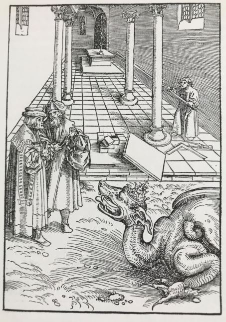 - Die Ausmessung des Tempels / Die zwei Zeugen und das Tier aus dem Abgrund, aus: Schramm, Albert: Luther und die Bibel. Die Illustration der Lutherbibel. Leipzig 1923, S. 22, Tafel 13.