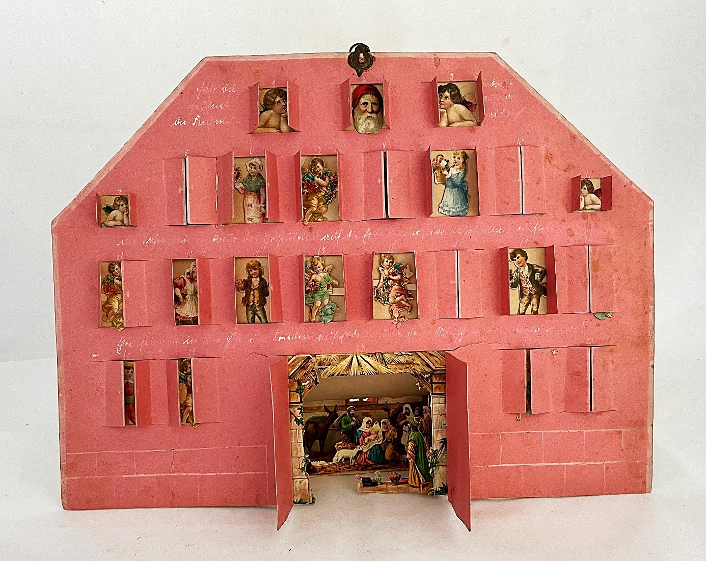 Dieser selbstgebastelte Adventskalender kam über den Nachlass einer frommen Familie in die Museale Sammlung. Handschriftlich steht auf dem Haus geschrieben: ...