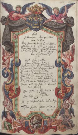 Als Galerie eine Auswahl von künstlerisch gestalteten Einträgen in den Tübinger Totenbüchern: