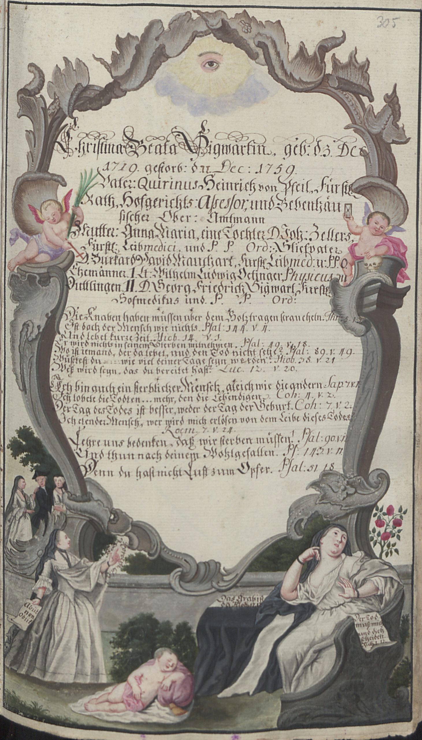 - Eintrag für Christina Beata Sigwart (1719-1759), Ehefrau des fürstlichen Hofmedikus und Universitätsprofessors Georg Friedrich Sigwart