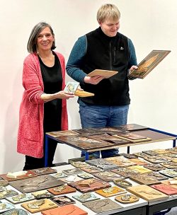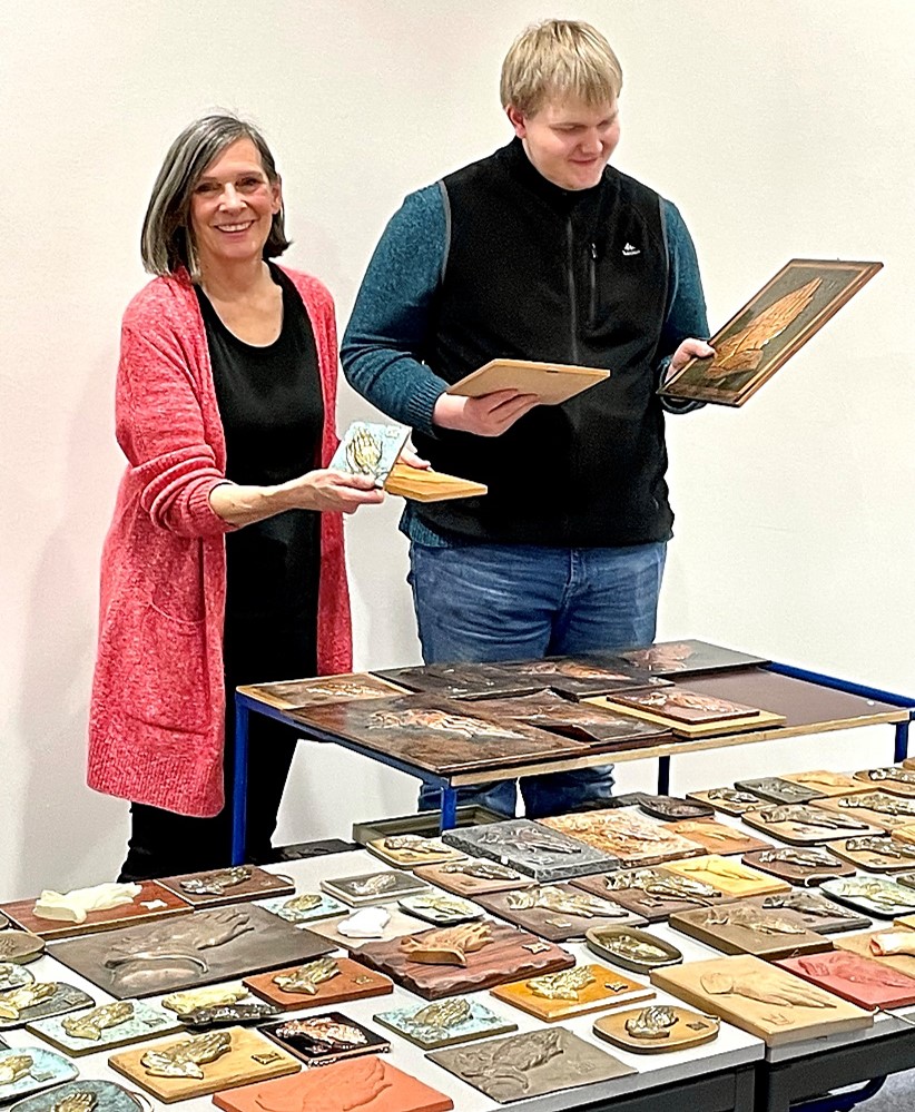 - Andrea Kittel und Felix Kräutl beim Sichten der Betenden Hände