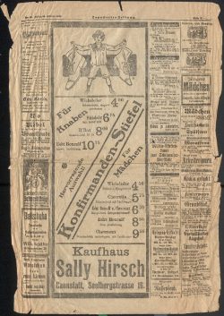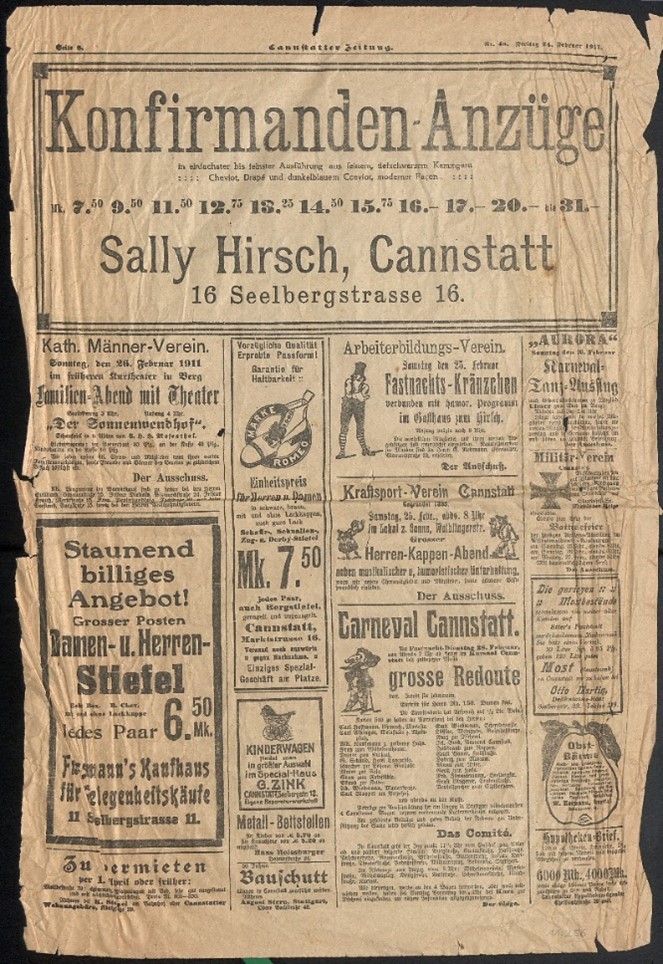 - Anzeigen Konfirmations-Kleidung, Cannstatter Zeitung, 21.2.1911 (Museale Sammlung, Inv. Nr. 11.256