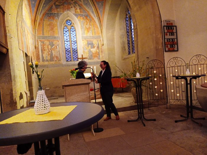 - Pfarrerin Telian bedankt sich bei Regina Fürsich für den Abendvortrag