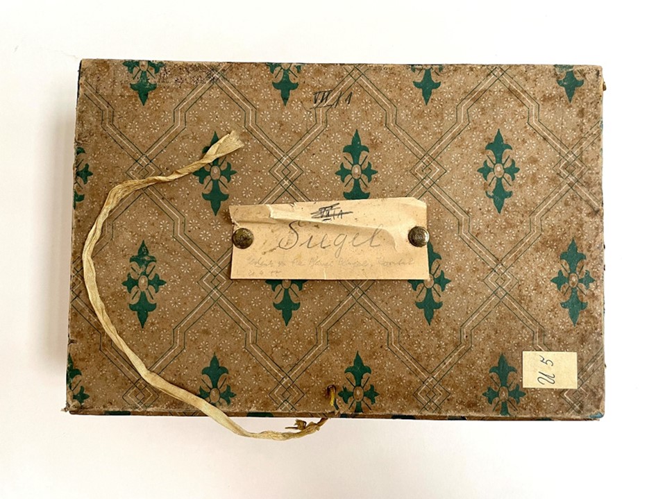 Jemand hatte die Siegel von Briefumschlägen abgetrennt, der genaue Zeitraum ist nicht zu ermitteln. Das in alphabetischer Reihenfolge geführte beiliegende Heft lässt darauf schließen, dass auch die in der Kiste aufbewahrten Siegel irgendwann hätten sortiert werden sollen.