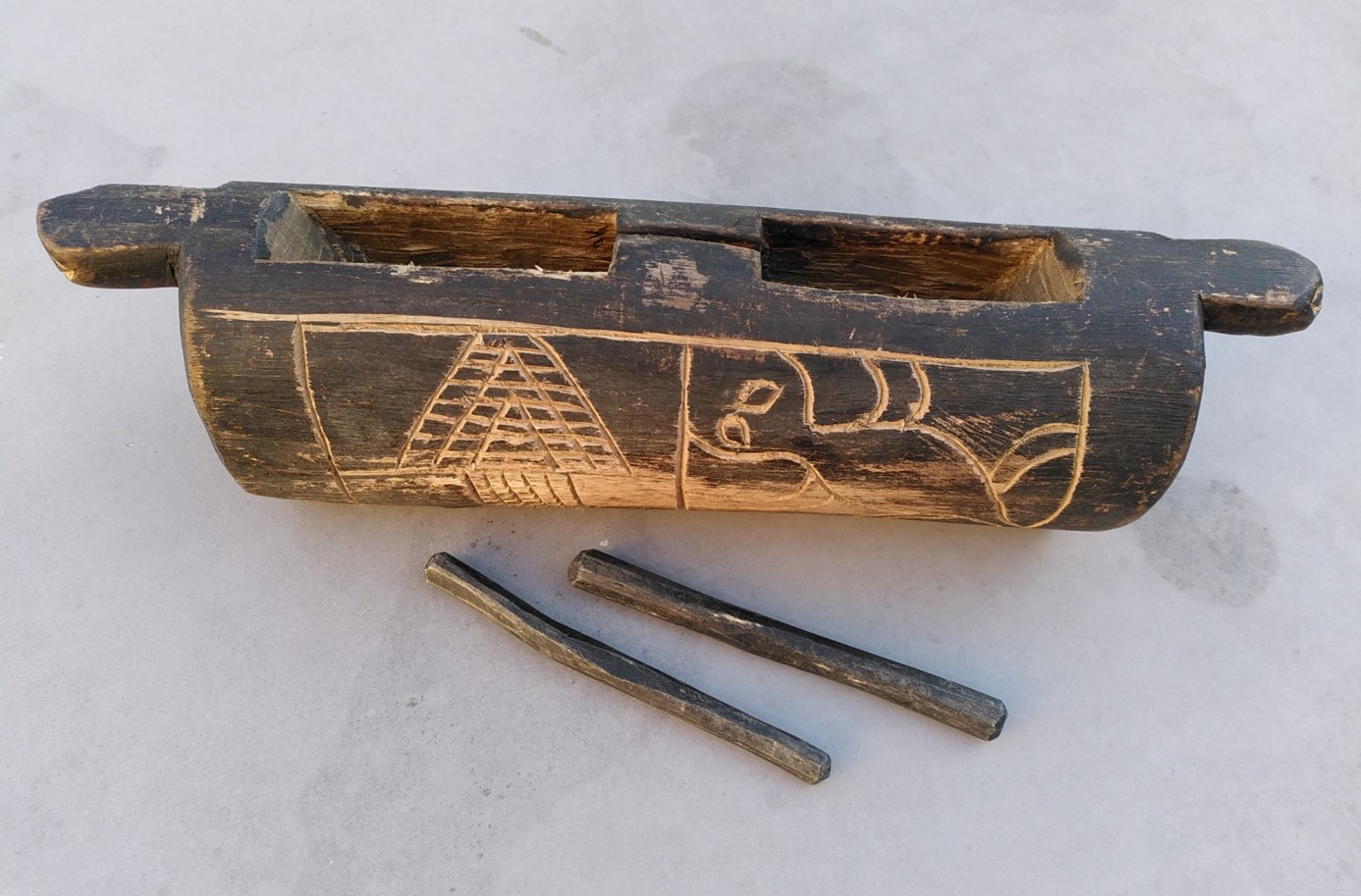 - Pädagogisches Begleitmaterial: Modell einer Sprechenden Trommel.Erworben von Pfarrer Jürgen Quack während seines Dienstes für die Basler Mission in der „Kirche der Geschwister“ (Ekklesiya Yan’uwa a Nigeria, E.Y.N.) 1978 – 1983 Verwendet als Anschauungsobjekt bei Vorträgen im Dienst für Mission, Ökumene und Entwicklung 1983 – 1993.