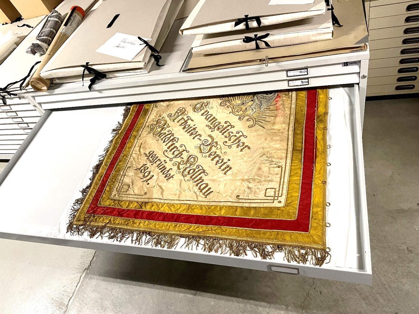Badische Fahne als Depositum im Archiv der württembergischen Landeskirche 16. August 2023 | Andrea Kittel | Museale Sammlung Vor kurzem ergab sich zwischen den beiden Evangelischen Landeskirchlichen Archiven von Baden und Württemberg eine spontane Zusammenarbeit. Im Keller des ... Mehr