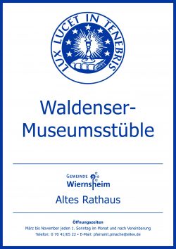Wer in die Welt der württembergischen Waldenser ein wenig eintauchen und etwas über sie erfahren möchte, dem kann der Besuch des Museumsstübles im ehemaligen Waldenserort Pinache empfohlen werden. Das kleine Museum wurde im alten Rathaus des heutigen Teilorts von Wiernsheim eingerichtet. In drei Räumen werden dort Dokumente, Gegenstände und Bilder aus der Geschichte des Waldenserortes gezeigt. Besonders eindrucksvoll ist etwa ein Tondokument eines alten waldensischen Sprechers der okzitanischen Sprache, die sich hörbar stark vom Französischen unterscheidet. Tatsächlich sprachen die württembergischen Waldenser im Alltagsleben nicht französisch, was nur die kirchliche Amtssprache war, sondern ihre alpine Form des Okzitanisch. Eindrucksvoll ist eine ausgestellte Tracht einer Waldenserin, die ein Geschenk der Gemeinde Pinasca zur Feier der 40-jährigen Partnerschaft an die bürgerliche Gemeinde Wiernsheim war.