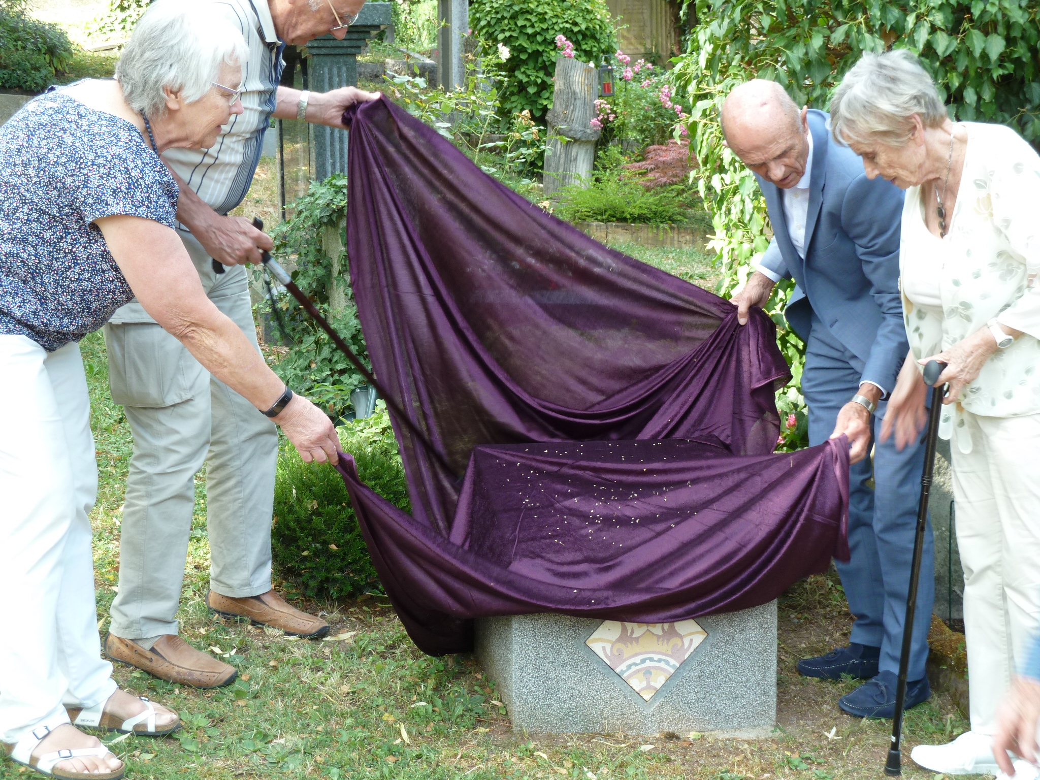 Beitragsbild: Vier Urenkel Hugo Wielands enthüllen den Gedenkstein