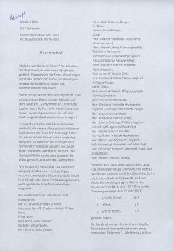 Die Zeitkapsel wurde anlässlich der Renovierung herausgenommen und geöffnet. Unsere Kollegin Birgitta Häberer wurde von der Kirchengemeinde kontaktiert und mit der Recherche zum Turmkugelarchiv beauftragt. Die Pfarrerin Heike Bosien besuchte unser Archiv und sichtete gemeinsam mit Frau Häberer verschiedene Akten aus dem Pfarrarchiv. Tatsächlich wurden die Dokumente bereits 1823 und dann 1977 transkribiert und im letztgenannten Jahr sogar im Gemeindebrief veröffentlicht. Auch die Umstände der Anfertigung der Turmkugel konnten durch die Korrespondenz geklärt werden. Inzwischen befindet sich die restaurierte Turmkugel wieder an ihrem Platz auf der Kirchturmspitze.