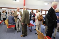 Am Freitag, 6.10.2023, fand mit circa 70 Gästen aus Nah und Fern ein Festakt zur Würdigung des Gelehrten Dr. Christoph Weismann im Lesesaal von Archiv und Bibliothek statt. Professor Dr. Hermann Ehmer, ehemaliger Referatsleiter von Archiv und Bibliothek, hielt den Festvortrag und konnte mit vielen Anekdoten aus dem Leben des Gelehrten Begeisterung hervorrufen. Dr. Weismann besaß eine private Bibliothek mit ca. 14 000 Büchern. Diese sowie andere handschriftliche Archivalien wurden inzwischen dem Archiv der Landeskirche und der Evangelischen Hochschul- und Zentralbibliothek überlassen. Eine kleine Ausstellung wurde im Foyer aufgebaut. Auch das Manuskript seiner Brenz-Bibliographie, die 2016 fertiggestellt und herausgegeben wurde, ist in einer der Vitrinen zu bestaunen.