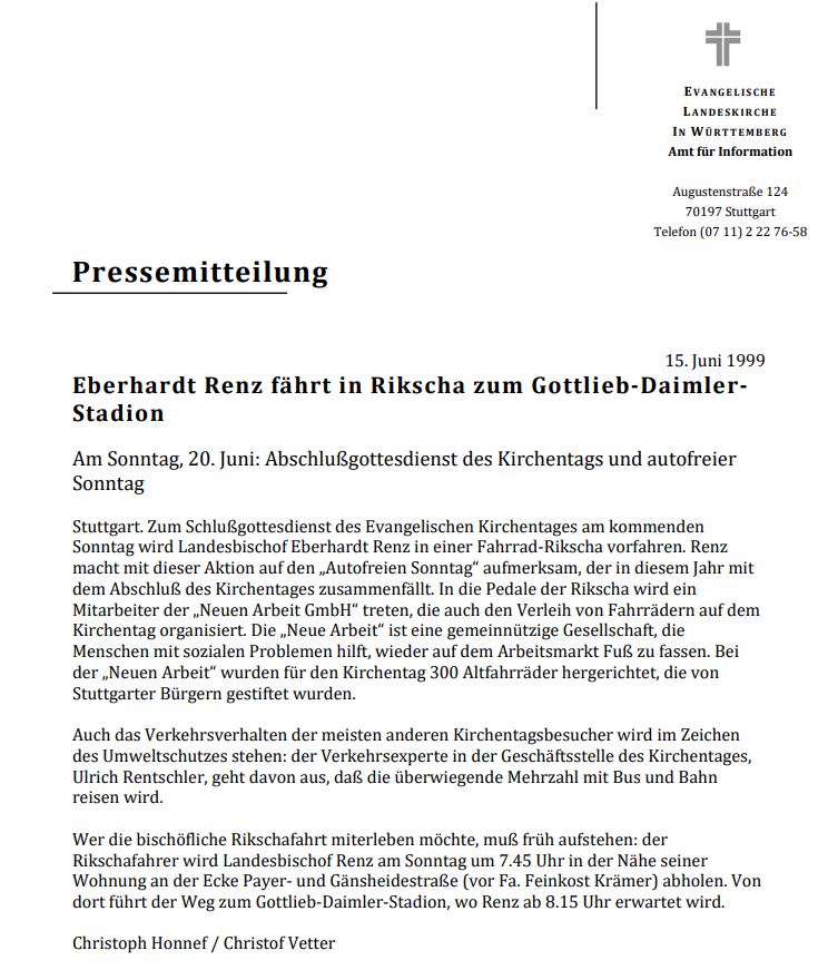 Digitale Pressemitteilungen der Landeskirche 1995-2023 online