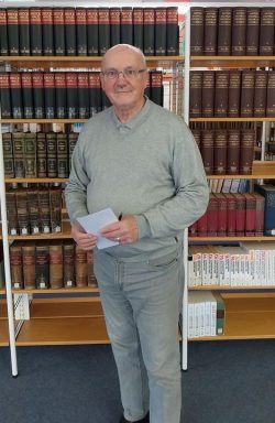 Herr Dr. Löblein hat sich dankenswerterweise ehrenamtlich bereit erklärt, den Nachlass zu erschließen. Er stammt aus dem bayerischen Franken und war dort zuletzt als Dekan in Aschaffenburg tätig. Eine leitende Tätigkeit im Diakonischen Werk der EKD, das früher seinen Sitz in Stuttgart hatte, führte ihn dann nach Württemberg. Für uns war er kein Unbekannter, da er im Ruhestand über ein kirchengeschichtliches Thema der Reformationszeit in Südwestdeutschland promovierte und aus diesem Grund unser Archiv und die Evangelische Zentralbibliothek besuchte. In Erlangen hatte er bereits Archivbestände diakonischer Einrichtungen erschlossen, so dass er bei der Verzeichnung der Bestände bereits auf Erfahrungen zurückgreifen konnte. Durch seine berufliche Tätigkeit in Stuttgart hatte Dr. Löblein Kontakt zur Familie Pfisterer und kannte Rudolf Pfisterer persönlich.