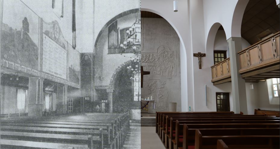 Bildcollage: Noah-Joshua Veit unter Verwendung eines Fotos der Inventarisation (LKAS) und A. Ast, 100 Jahre Evangelische Lamprechtskirche, S. 12, Foto von 1913.