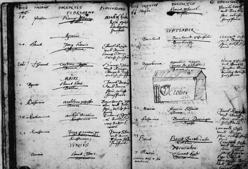 Im ältesten Kirchenbuch von Neckarhausen (Dekanat Nürtingen) findet sich unter den Taufeinträgen des Jahres 1567 eine bildliche Darstellung des Monats ...