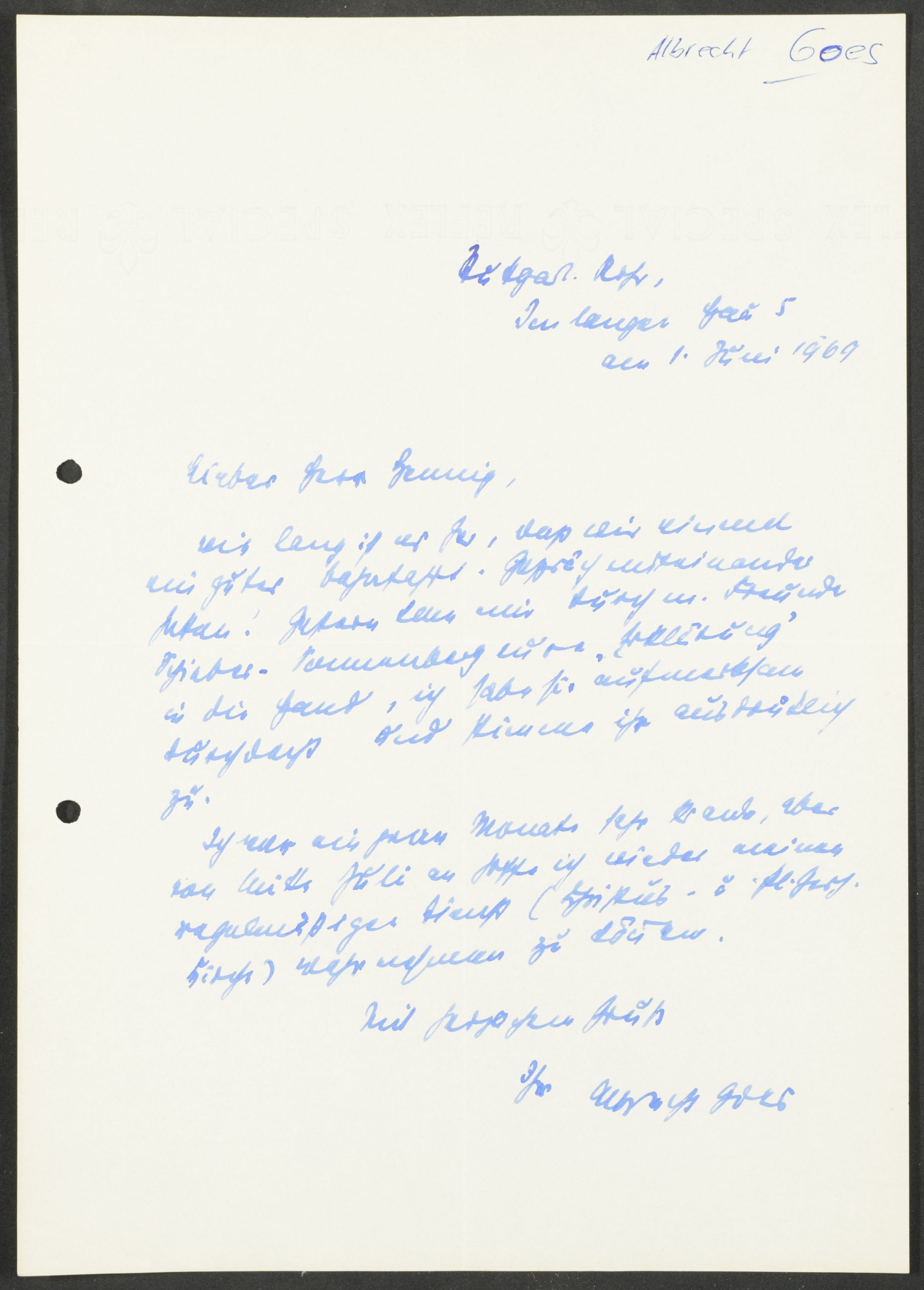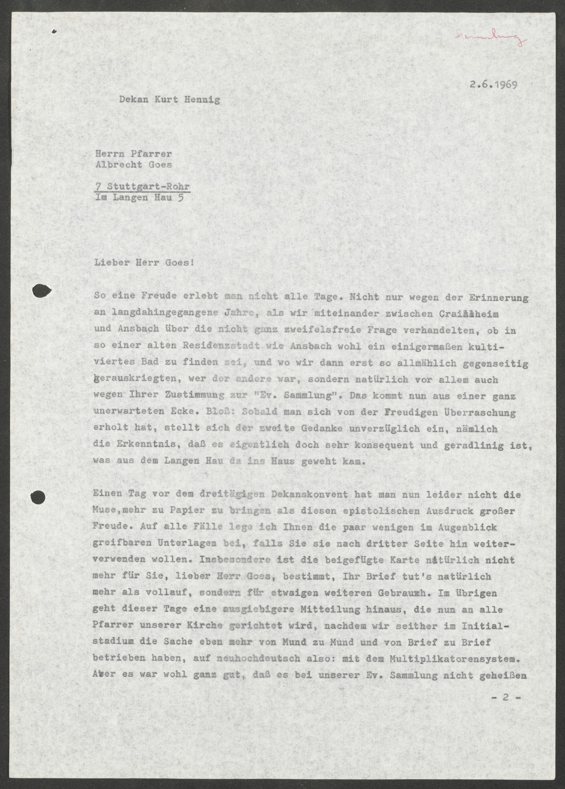 - Brief von Albrecht Goes an Dekan Hennig. LKAS, K48, Nr. 1